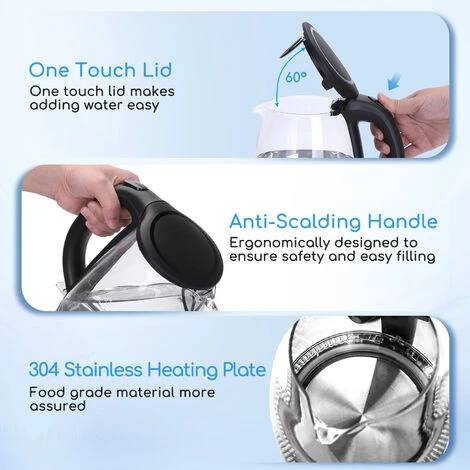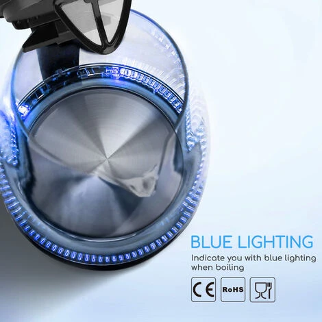 Aigostar Adam 30GOM – Bollitore d’acqua in vetro borosilicato con illuminazione a LED. 2200W, 1.7L e Color Nero. Protezione Boil-dry. BPA FREE. Design Esclusivo.