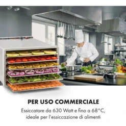 Klarstein Fruit Jerky Steel 6 – Essiccatore, 6 Ripiani, 630 W, Superficie: 0,65 M²