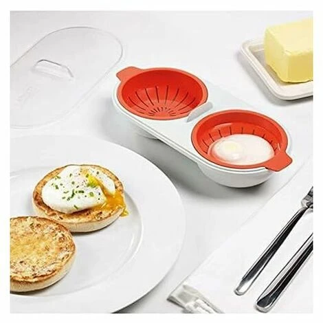 【Cuocitore per uova in camicia a microonde】Cuociuova doppio per microonde, grande capacità, facile da usare e pratico, uova in camicia perfette, prepara la colazione e in qualsiasi momento in pochi minuti.