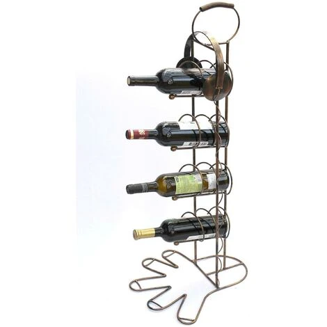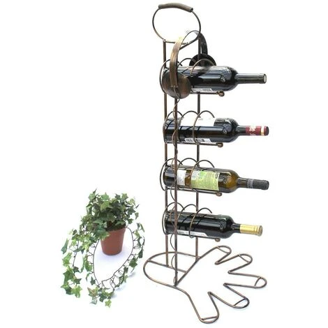 Scaffale per vini porta bottiglie – fantastica decorazione da camera. Realizzato in metallo Molto robusto e decorativo con verniciatura a smalto di qualità Color bronzo Dimensioni: Alt. 93 cm, larg. e prof. in piedi ca. 40 x 40 cm