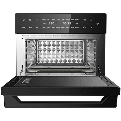 Dotata di pannello di controllo LED touch facile da usare, infatti con un solo tocco potrai impostare fino a 18 diversi programmi di cottura pre-impostati come: Frittura ad Aria, Patatine, Alette di Pollo, Pizza, Bistecca, Biscotti, Snack, Verdure, Toast, Dolci, Bagel, Arrostisci, Essiccatore, Prova, Scongela, Scalda, Riscalda, inoltre potrai impostare il timer fino ad un massimo di 12 ore e regolare la temperatura di cottura da 30 a 230°.