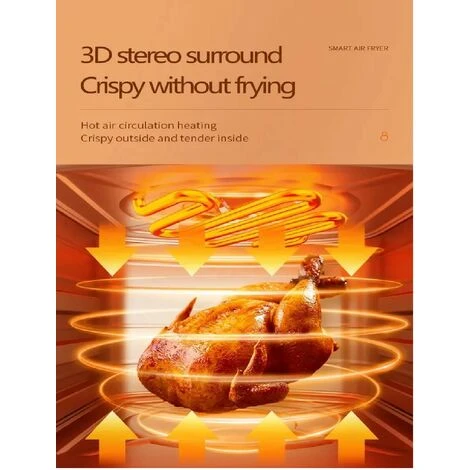 La friggitrice ad aria utilizza la tecnologia di circolazione dell’aria ad alta velocità rispetto alle tradizionali friggitrici.