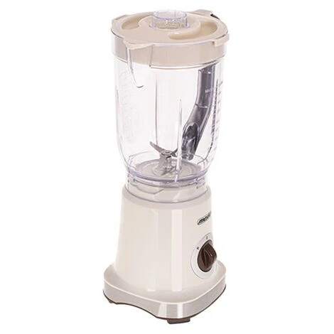 Frullatore elettrico 500W con potenza massima raggiungibile di 1000W a 2 velocità e con funzione pulse. Il dispositivo e dotato di 4 lame in acciaio inossidabili smontabili per rendere più facile ed accurata la pulizia. La caraffa è prodotta in plastica senza BPA con capacità di 1,8 litri, inoltre il coperchio è dotato di foro dosatore per inserire gli alimenti nel frullatore. Dispone di piedini antiscivolo. Con questo dispositivo da cucina è possibile preparare un’infinità di preparati con base di frutta o verdura o addirittura un mix di entrambe ed avere una merenda sana o prepararsi cocktail a base di frutta fresca o addirittura buonissimi frappè. Il frullatore è compatto e poco ingombrante, lo si può riporre ovunque senza creare intasamenti nelle dispense. Di colore beige. Dimensioni 245x190x320 mm. Certificazioni CE.