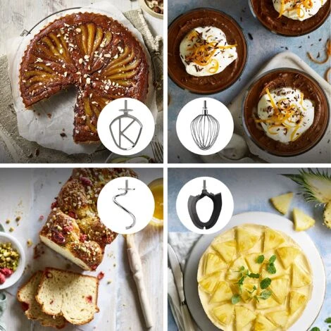 Impastatrice, set da pasticceria 4 pezzi (gancio K, gancio per impastare, asta in acciaio inossidabile, elemento frusta flessibile), boccale da 7 litri, attacco per mescolare in vetro.