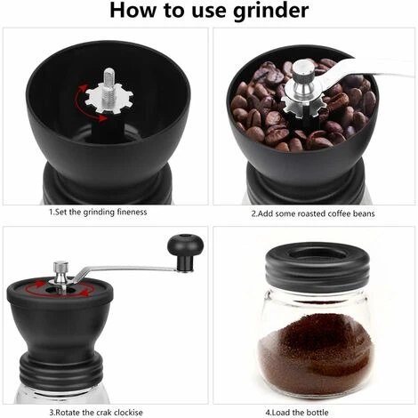 [Facile da usare e pulire] Una macchina da caffè manuale nel mulino è facile da smontare e pulire senza attrezzi. L’operazione è semplice, basta premere il pulsante per avviare l’operazione e quindi rilasciare il pulsante per interrompere l’operazione. In questo modo, e attraverso la sua copertura trasparente, è possibile controllare il grado di frammentazione in qualsiasi momento.