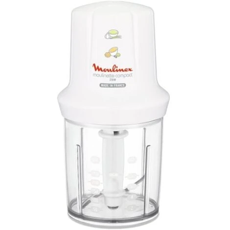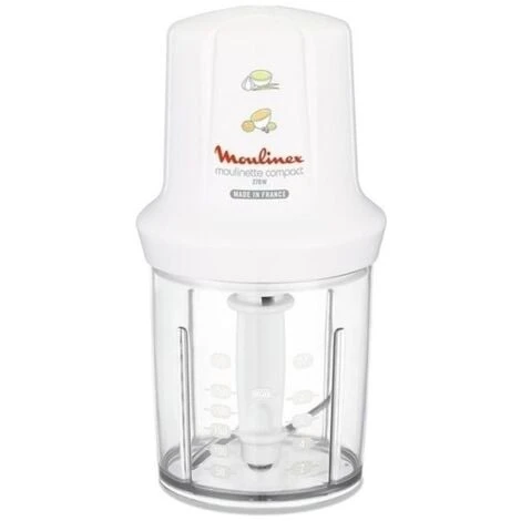 Moulinex DJ3001 Moulinette Compact, 270 W, 43 Decibel, plastica, Bianco. Capacità ciotola: 0,25 L, Capacità della vaschetta: 0,2 kg, Paese di origine: Francia. Colore del prodotto: Bianco, Materiale ciotola: Plastica, Materiale lama: Acciaio inossidabile. Potenza: 270 W. Larghezza: 12 mm, Profondità: 12 mm, Altezza: 20 mm